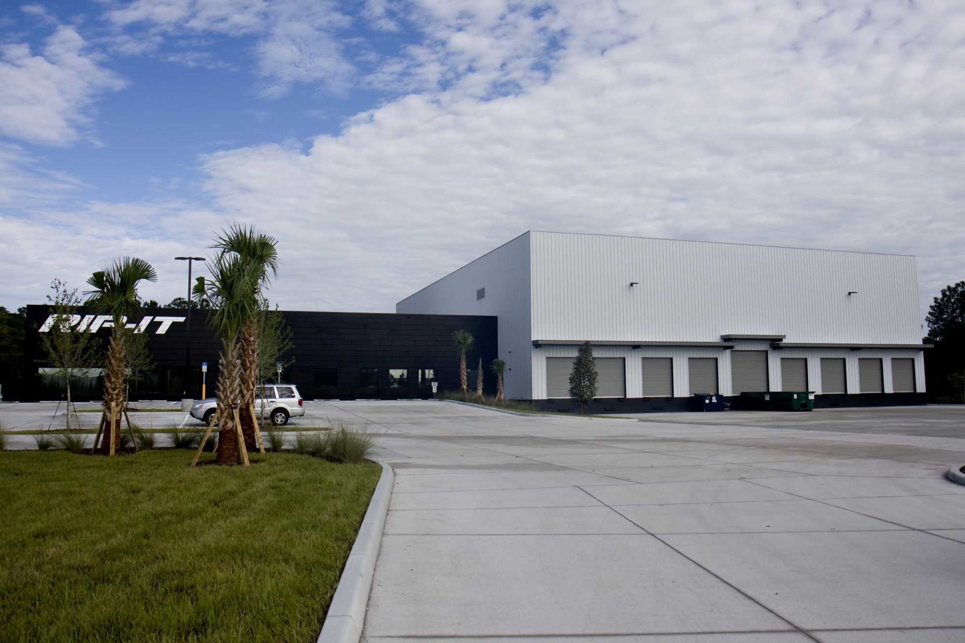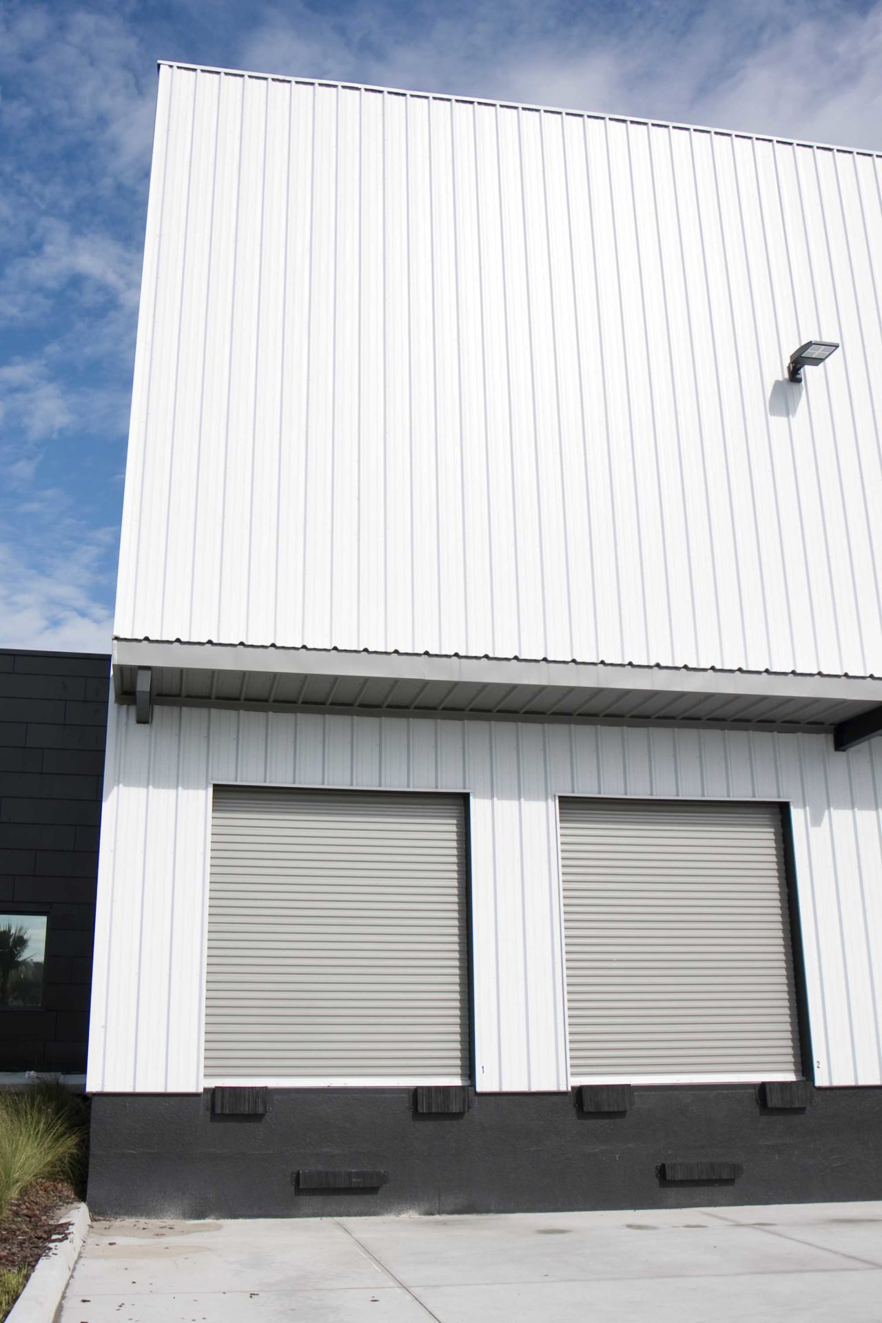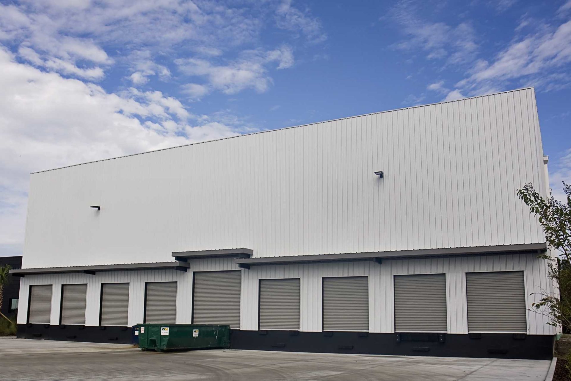 Allied Steel Buildings was selected by Chronus Construction to provide a 120’x160x’42’ metal warehouse and showroom for the growing company. The clear span warehouse features a sleek single slope roof, with a valley gutter system on the East side, and a parapet wall on all four sides. Located in Orlando, Florida the building was built to withstand the hurricane force winds and damaging rain with 150 mph Wind-Load and 24 gauge roof and wall panel