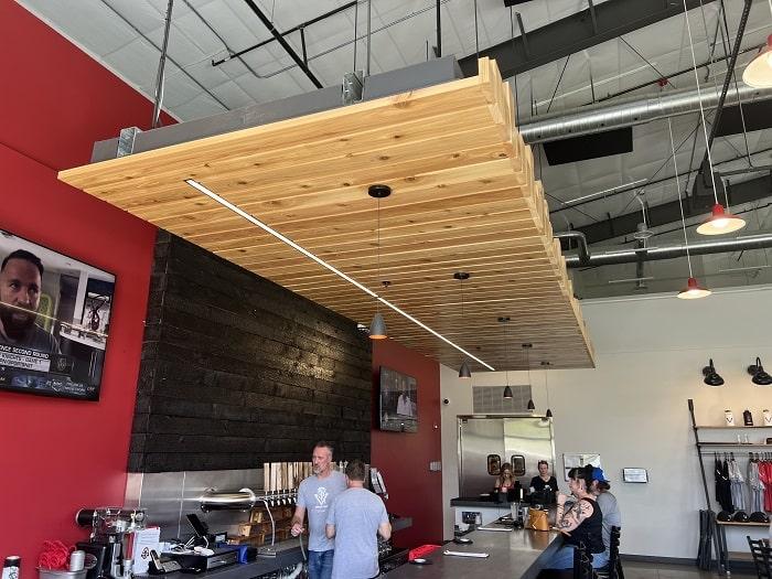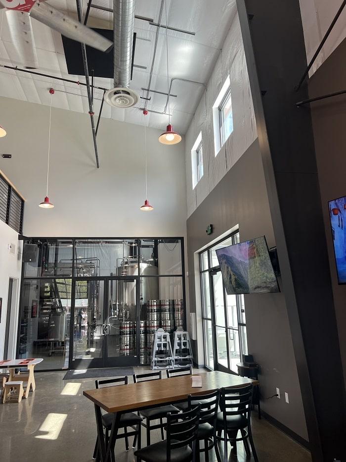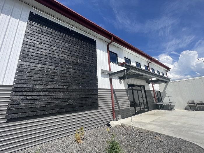 To instill warmth into an otherwise industrial design and create an economical yet visually impactful space, we integrated a variety of panel colors and profiles into the design. The finished prefab steel-building consists of vertical PBR panels, horizontal PBU panels, and a standing seam roof, with high ceilings, abundant natural light, and a second floor for private events. The end result: a 7,840 square foot venue that feels spacious and open with ample room for a taproom and bar plus a large brewery.