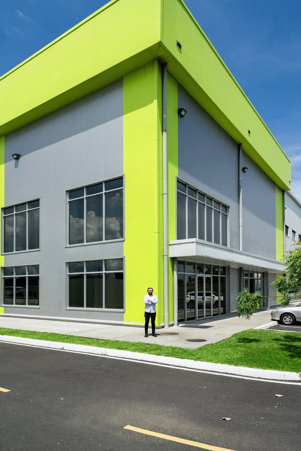 Though installation started off rocky due to relentless heavy rainfall during crucial months, Allied provided continuous support with frequent site visits, seeing the project through to completion on time. The culmination of these efforts revealed a striking warehouse with an eye-catching façade of Insulated Metal Panels (IMP) in four colors, complemented by IMP roof panels, unique pop-outs, and a custom-designed gutter system. Though challenging, accommodating changes to the design were worth the push, resulting in aesthetics beyond what is typical for warehouses and metal buildings, while surpassing the client’s expectations.