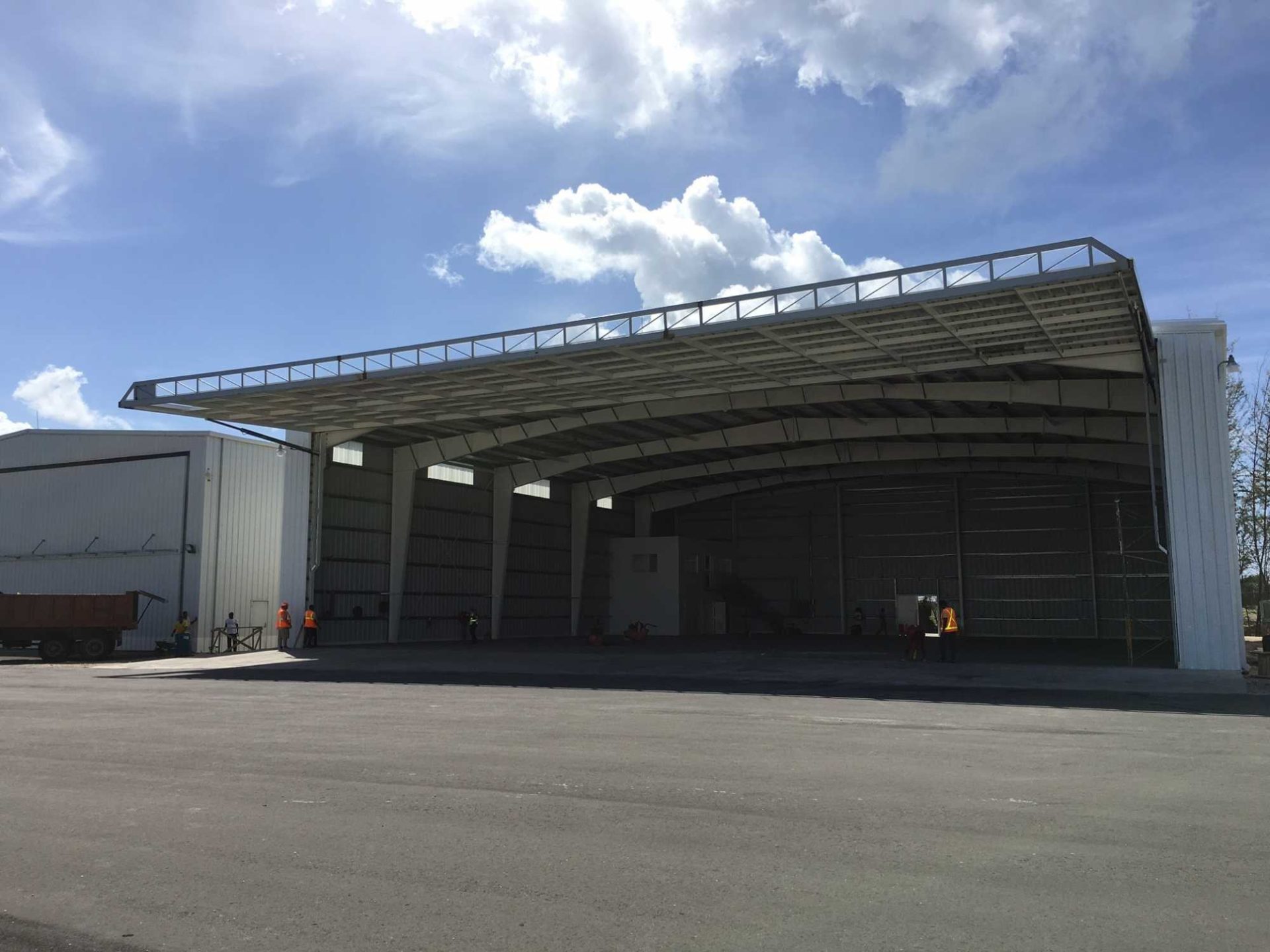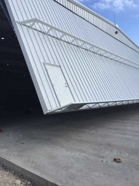 We offer Aviation bi-fold or Aviation Hydraulic hangar door options, as featured in this project.