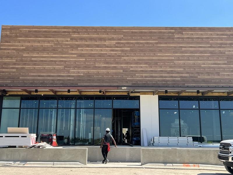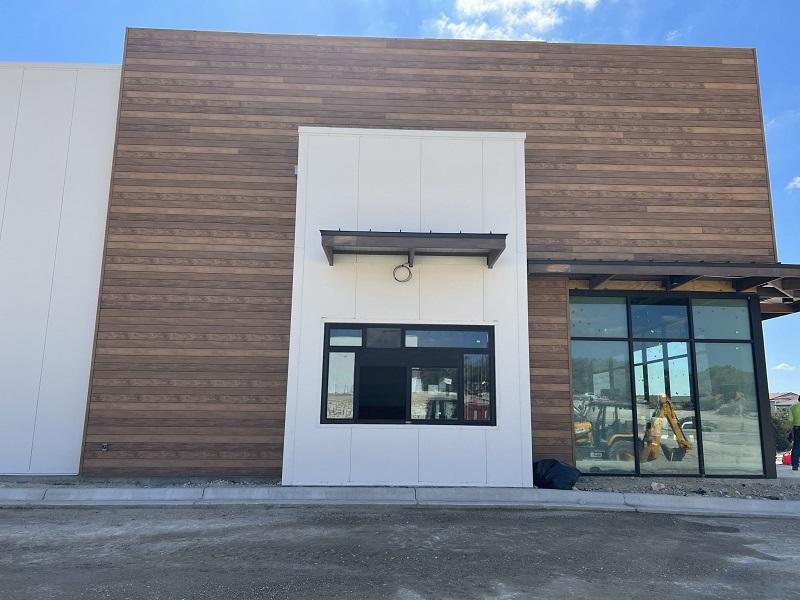 Featuring primary steel produced by Allied’s manufacturing facility in La Coruna, Spain, a standing seam roof, a canopy over future storefront space, and a drive through for a fast-casual dining establishment, the retail building has few complexities from an architectural or engineering perspective, yet it stands out as an impressive example of the incredible design potential that our buildings have to offer.