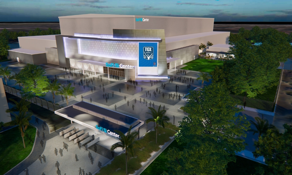 1,500-seat SoFi Center will house the TGL interactive golf league founded by Tiger Woods and Rory McIlroy.