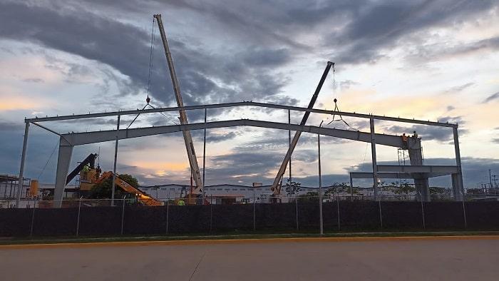 El edificio de diseño personalizado, que consta de una estructura de acero, columnas y vigas, todo procedente de la fábrica de Allied en España, además de un techo de panel de metal aislado y paneles de pared procedentes de proveedores de confianza, está en proceso de instalación y está previsto que finalice en julio de 2023. A la fecha, cada parte del proceso de diseño, entrega e instalación ha sido fácil y sin complicaciones. El cliente feliz está ansioso por encontrar un inquilino para ocupar esta primera fase de su proyecto más nuevo, momento en el que comenzaremos con la fase dos.
